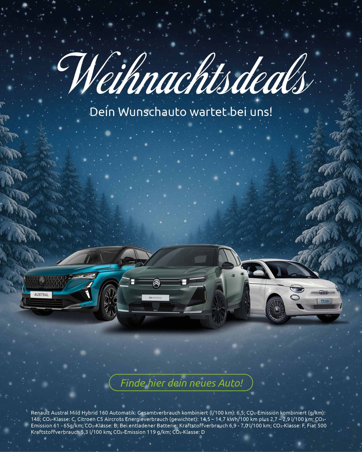 Ein Kilometerleasingangebot (Bonität vorausgesetzt) für Privatkunden der Stellantis Bank SA Niederlassung Deutschland, Siemensstraße 10, 63263 Neu-Isenburg zzgl. Zulassung. Die Angaben entsprechen zugleich dem 2/3 Beispiel nach § 6a Abs. 3 PAngV. Mehr- und Minderkilometer (Freigrenze 2.500 km) sowie eventuell vorhandene Schäden werden nach Vertragsende gesondert abgerechnet.